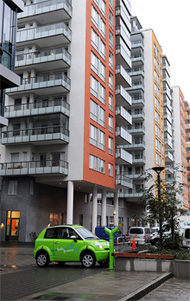 I höstas invigde energiföretaget Fortum och byggföretaget Skanska ett nybyggt flerfamiljshus utrustat med framtidens energilösningar, bland annat solpaneler som bidrar till husets gemensamma elanvänding och en display i trapphuset som gör det möjligt att följa både den egna elproduktionen och konsumtionen. I veckan startades den elfordonspool, för de boende i huset, som är en del av projektet.