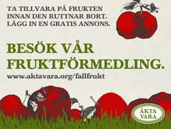 Idén är att fruktförmedlingen ska koppla samman er som har för mycket äpplen eller annan frukt med de som vill ha frukt. Den som har mer frukt än vad den behöver lägger helt enkelt in en annons på Äkta vara’s hemsida. Sedan kan du som vill ta hand om överbliven frukt gå in på hemsidan och söka efter län. Smidigt, eller hur?