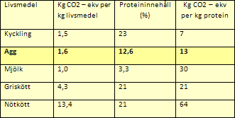 Tabell 5. Ägg kräver minst energi om man räknar energiinsats per kilo protein. Källa: SIK.